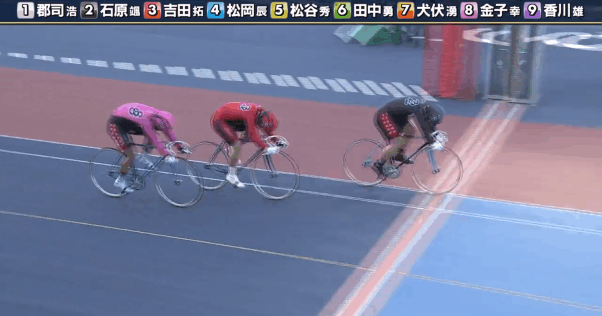 ⑦犬伏の抑え先行、③吉田は意識しつつ飛びつき含めて前に踏むか。