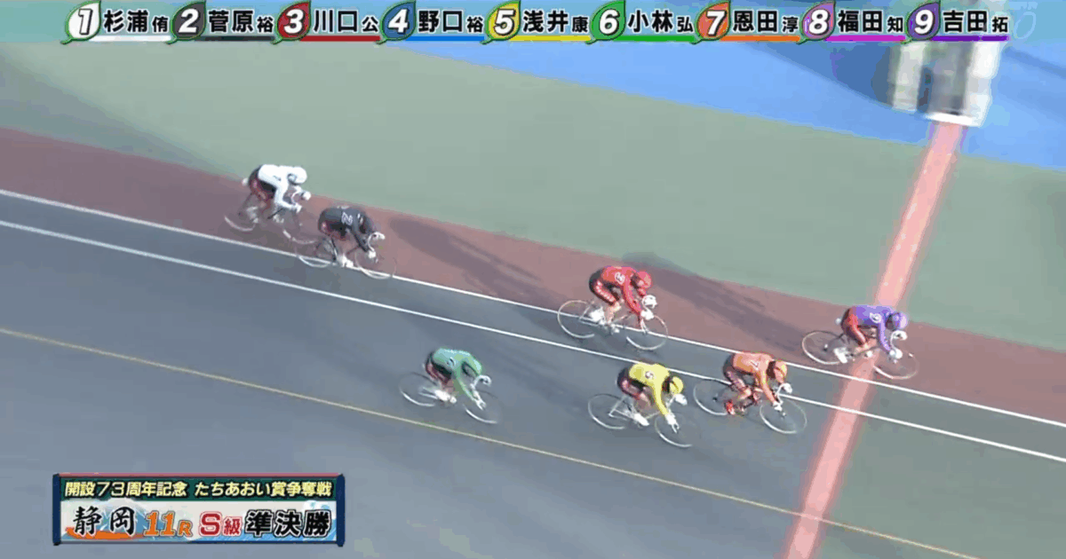 ④野口の抑え先行、⑤浅井は中団で、①杉浦のカマシ捲りが決まるのか。
